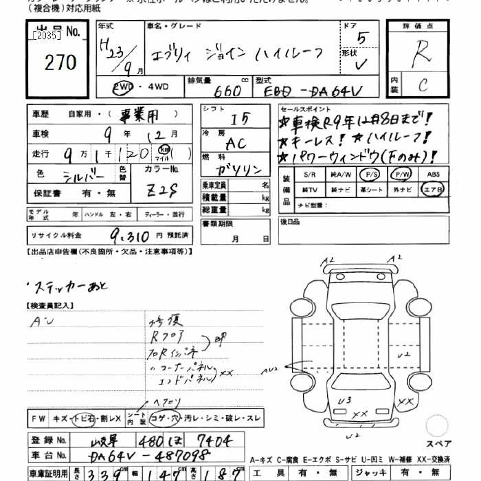 Год выпуска2011 Пробег 91 000 км КузовDA64V Комплектация JOIN HIGH ROOF