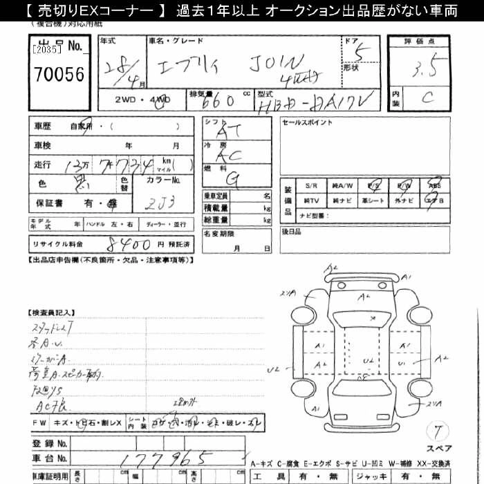 Статус выставлен на аукцион Лот 70056 Аукцион JU Gifu Дата аукциона 14.03.2026