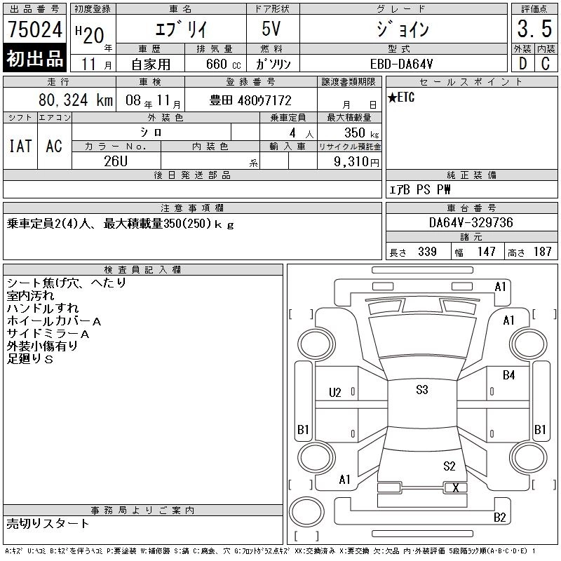 Год выпуска2008 Пробег 80 000 км КузовDA64V Комплектация JOIN