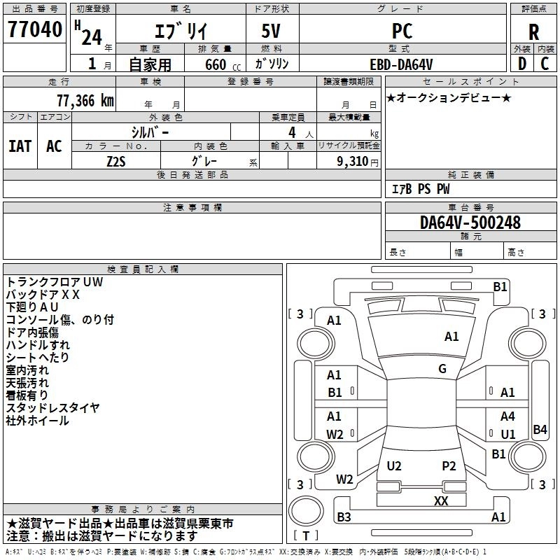 Год выпуска2012 Пробег 77 000 км КузовDA64V КомплектацияPC