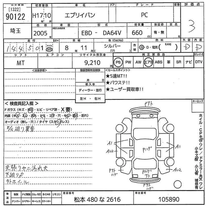 Год выпуска2005 Пробег 145 000 км КузовDA64V КомплектацияPC