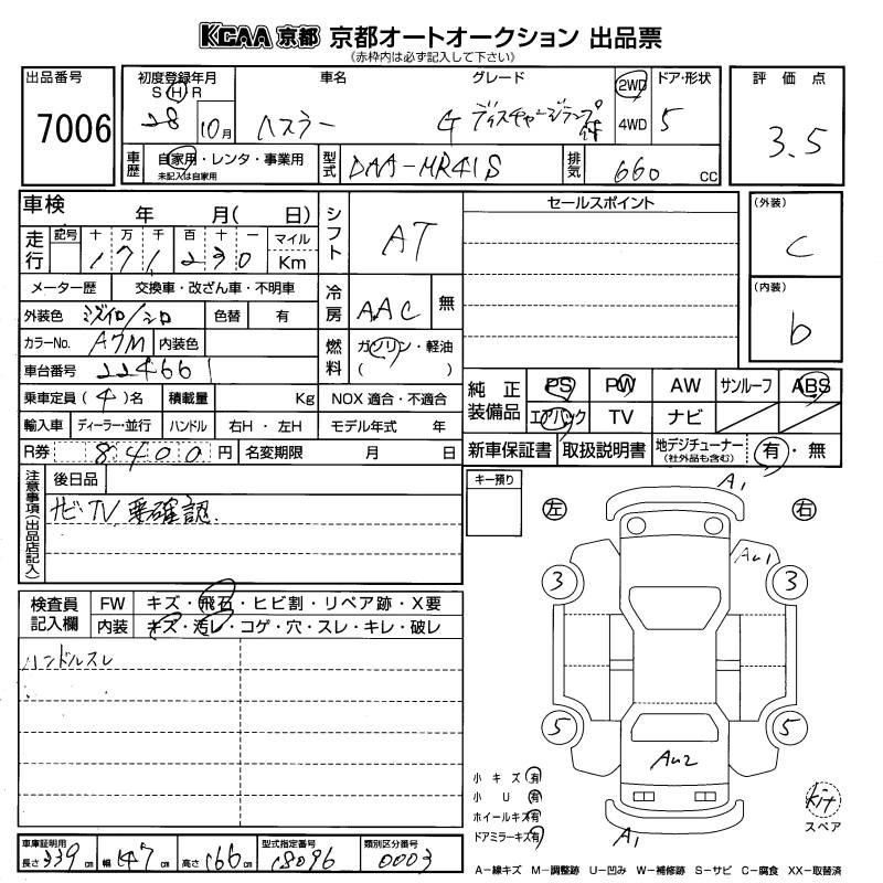 SUZUKI HUSTLER 2016 г., лот № 7006