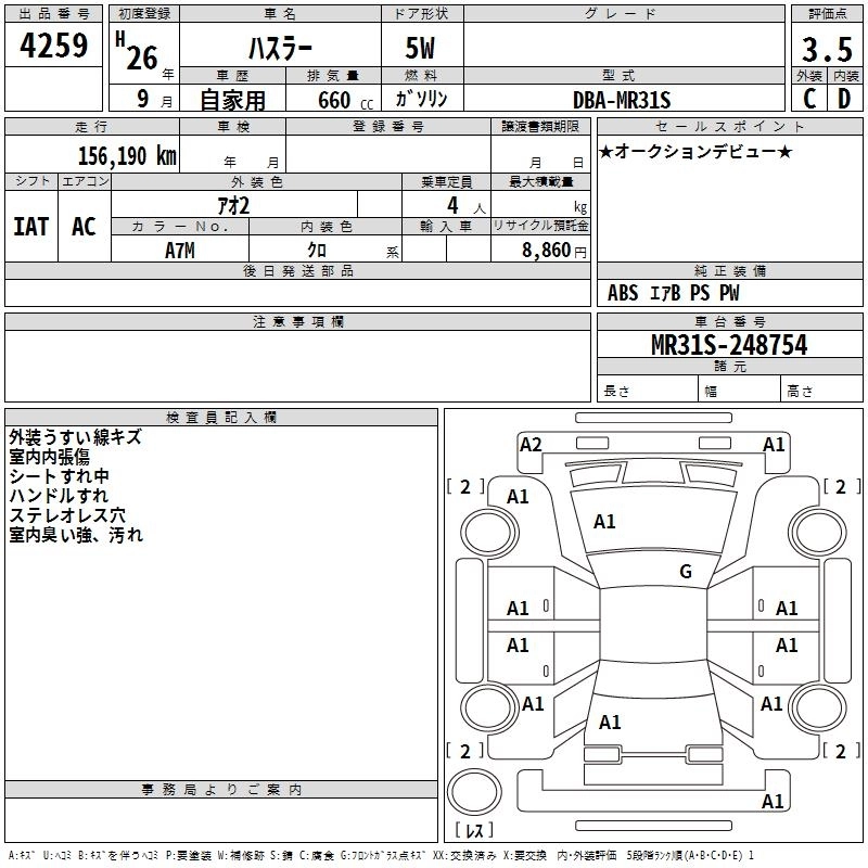 SUZUKI HUSTLER 2014 г., лот № 4259