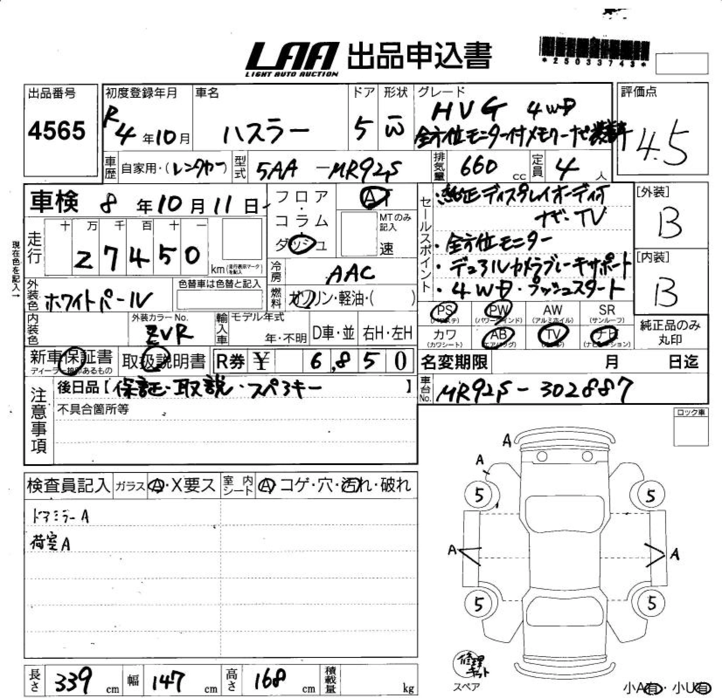 Статус выставлен на аукцион Лот 4565 Аукцион LAA Shikoku Дата аукциона 22.10.2025