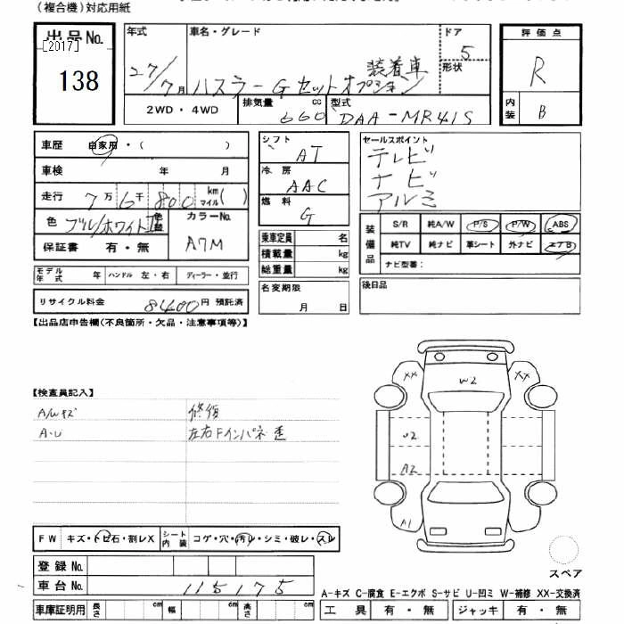 SUZUKI HUSTLER 2015 г., лот № 138
