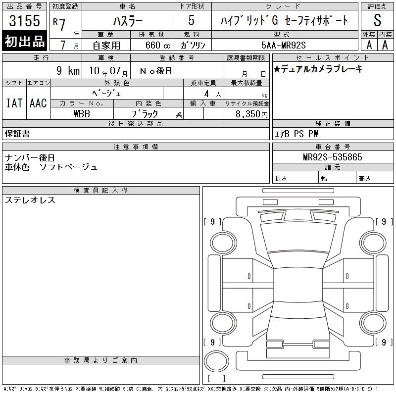 Статус продан Лот 3155 Аукцион CAA Chubu Дата аукциона 05.11.2025