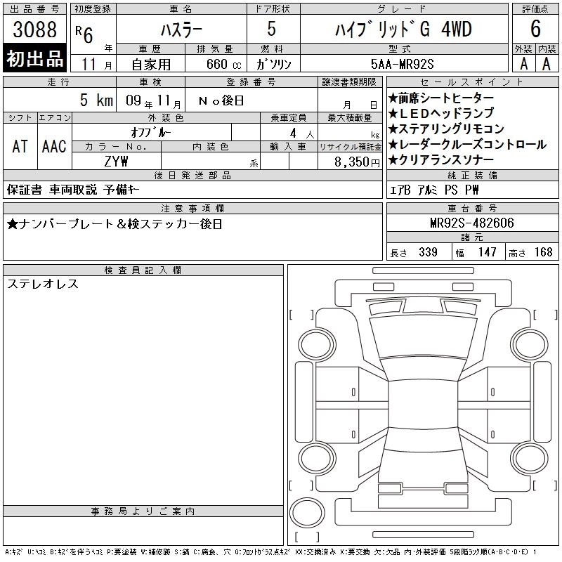 Статус продан Лот 3088 Аукцион CAA Chubu Дата аукциона 05.11.2025