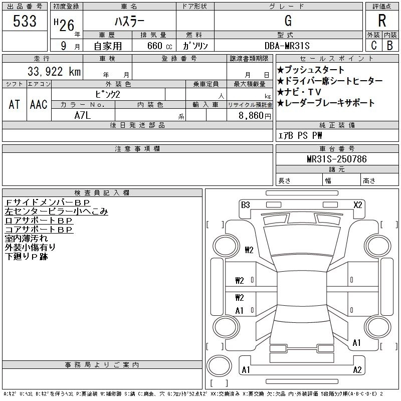 SUZUKI HUSTLER 2014 г., лот № 533