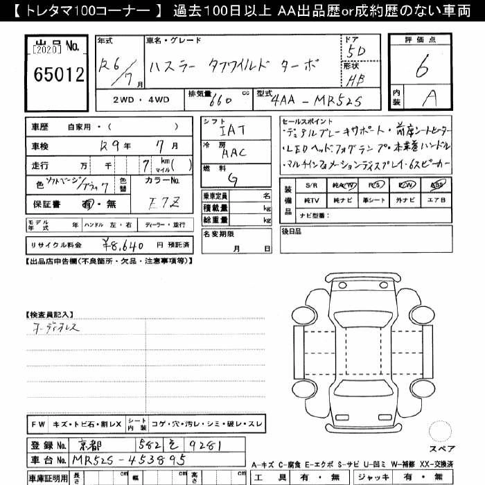 SUZUKI HUSTLER 2024 г., лот № 65012