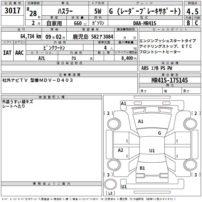 Год выпуска2016 Пробег 65 000 км КузовMR41S КомплектацияG ( RADAR BRAKE SUPPORT )