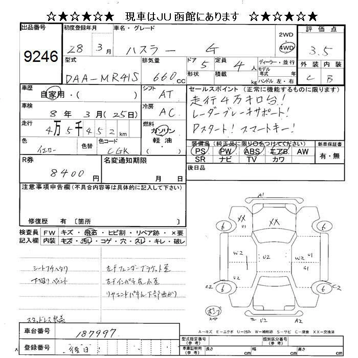 SUZUKI HUSTLER 2016 г., лот № 9246