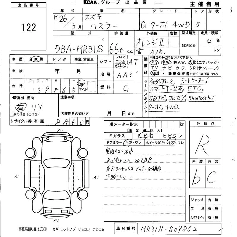 SUZUKI HUSTLER 2014 г., лот № 122