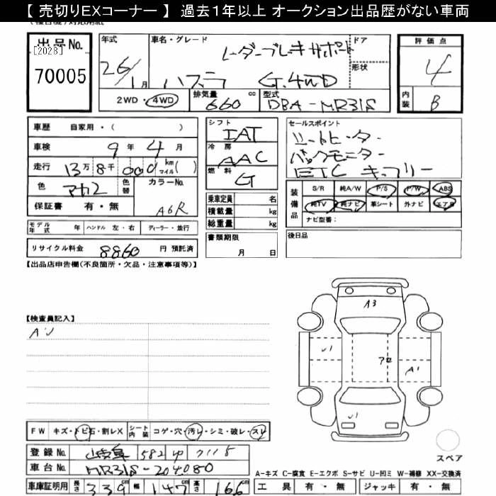 Статус выставлен на аукцион Лот 70005 Аукцион JU Gifu Дата аукциона 24.01.2026