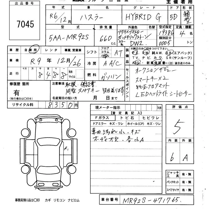 SUZUKI HUSTLER 2024 г., лот № 7045