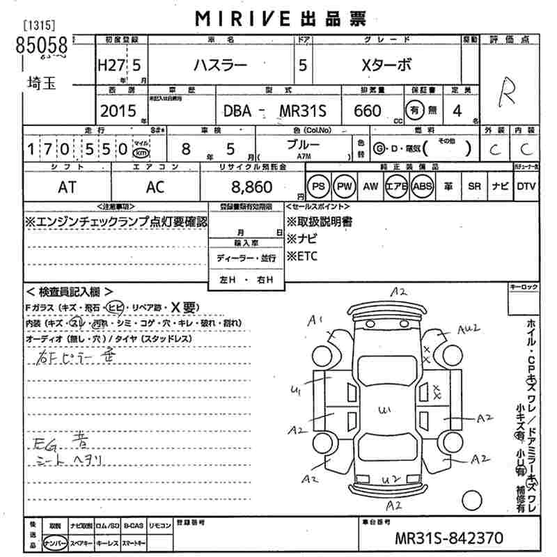 SUZUKI HUSTLER 2015 г., лот № 85058