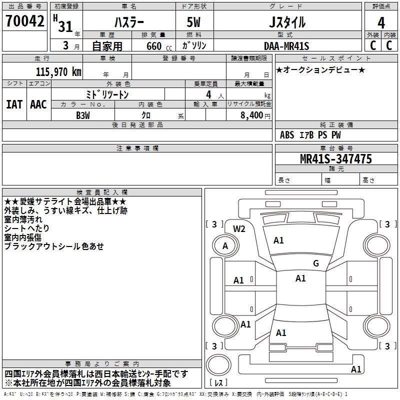 Статус выставлен на аукцион Лот 70042 Аукцион TAA Shikoku Дата аукциона 27.01.2026