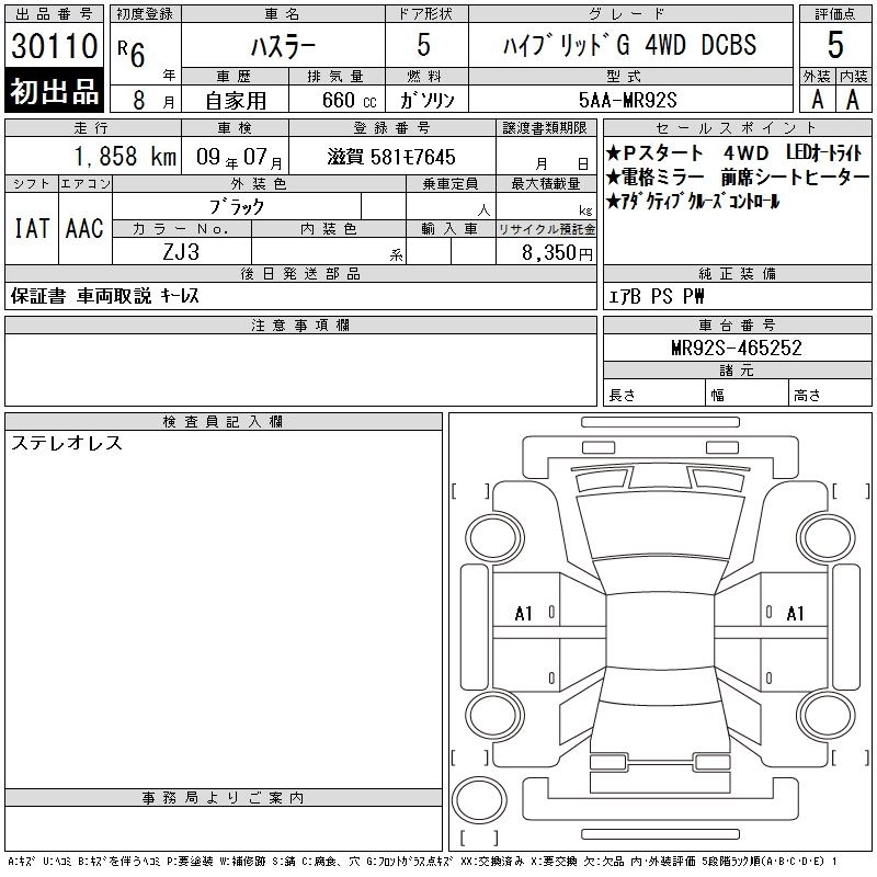 SUZUKI HUSTLER 2024 г., лот № 30110