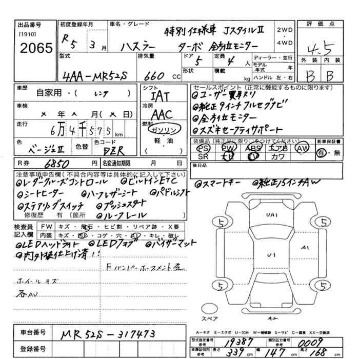 65 000 км КузовMR52S КомплектацияJ STYLE II TURBO ZEN HOWE I MONITOR SPECIAL SIYO