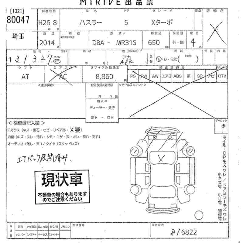Статус выставлен на аукцион Лот 80047 Аукцион MIRIVE Saitama Дата аукциона 11.03.2026