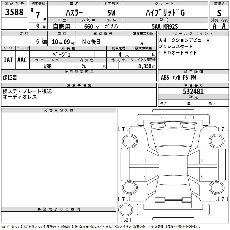 SUZUKI HUSTLER 2025 г., лот № 3588