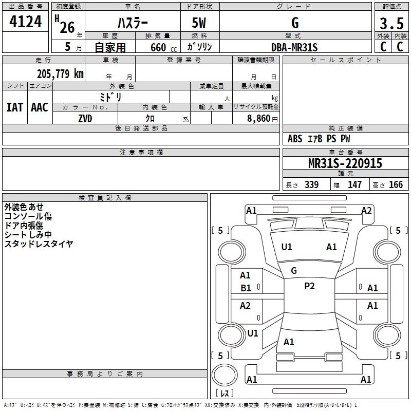 SUZUKI HUSTLER 2014 г., лот № 4124