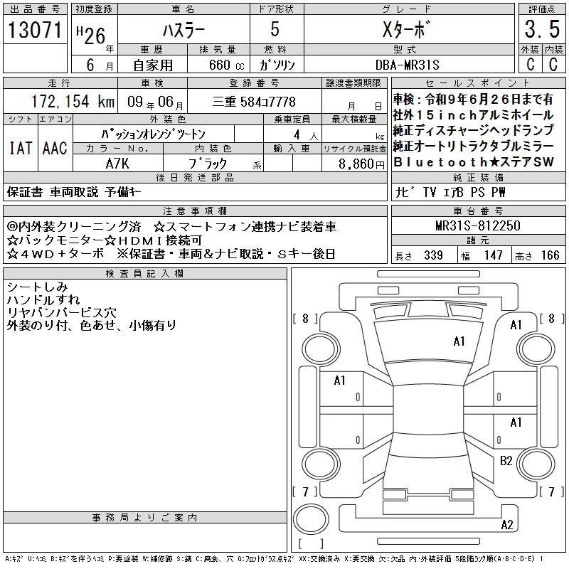 SUZUKI HUSTLER 2014 г., лот № 13071