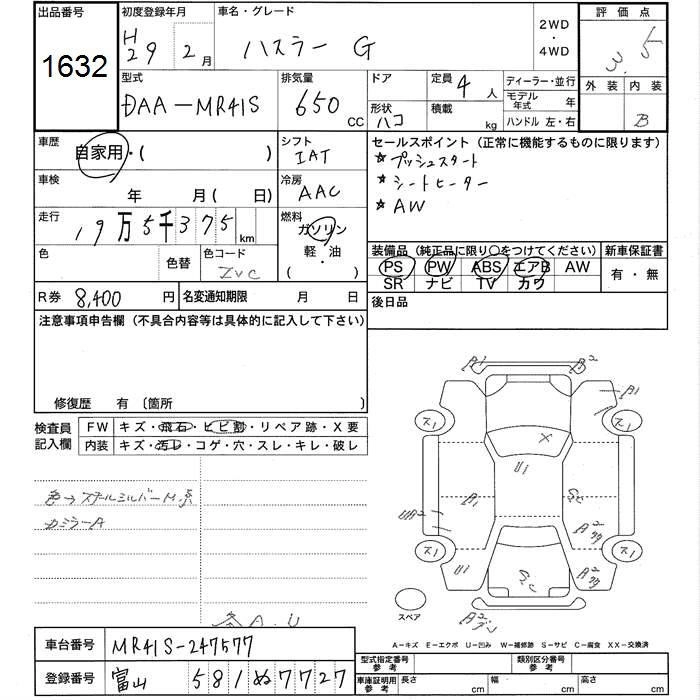 Статус выставлен на аукцион Лот 1632 Аукцион JU Toyama Дата аукциона 12.03.2026