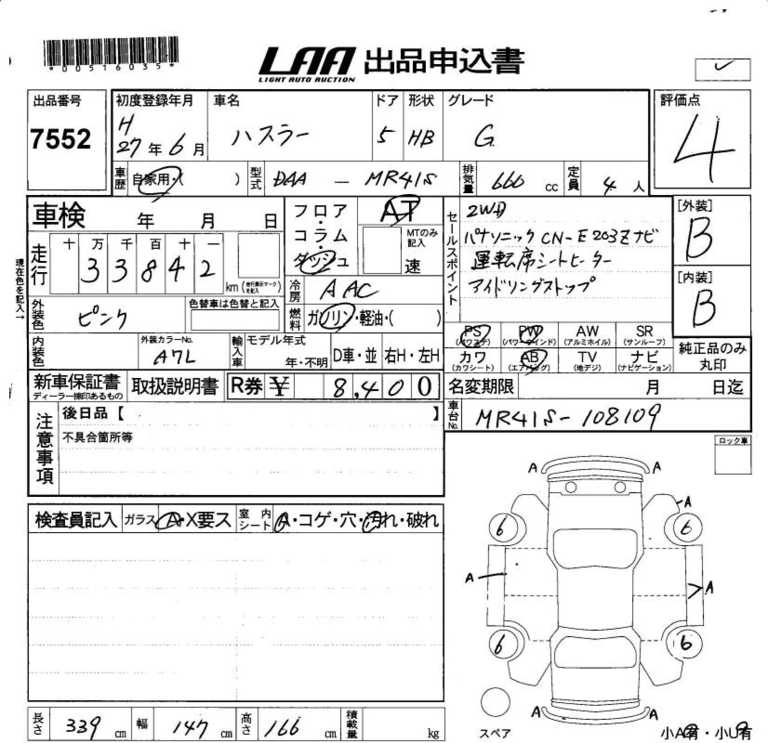 Статус выставлен на аукцион Лот 7552 Аукцион LAA Okayama Дата аукциона 13.03.2026
