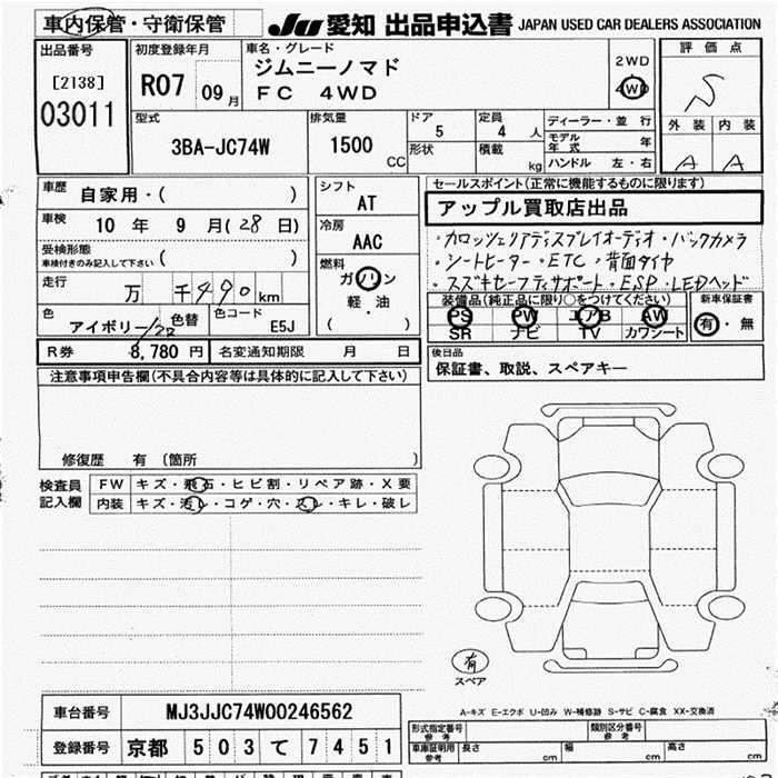 Статус выставлен на аукцион Лот 3011 Аукцион JU Aichi Дата аукциона 11.12.2025