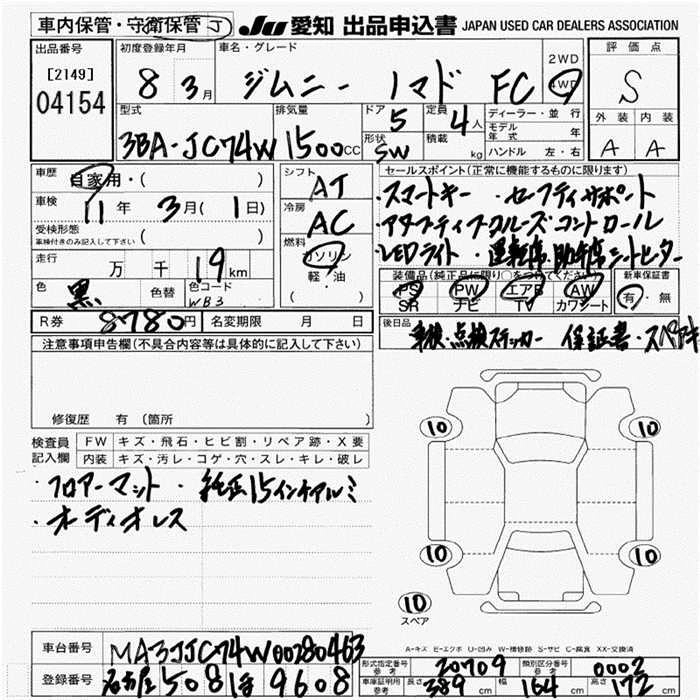 Статус выставлен на аукцион Лот 4154 Аукцион JU Aichi Дата аукциона 12.03.2026