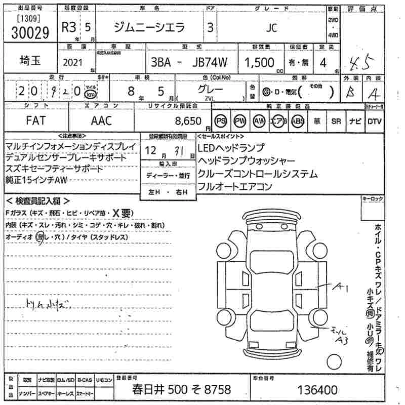 SUZUKI JIMNY SIERRA 2021 г., лот № 30029