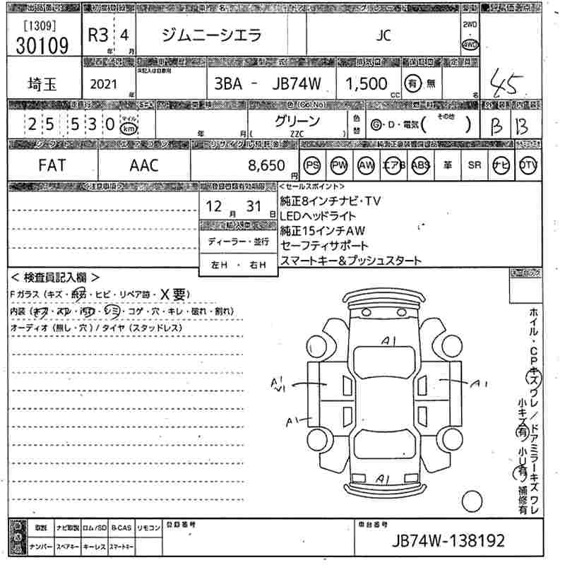 SUZUKI JIMNY SIERRA 2021 г., лот № 30109