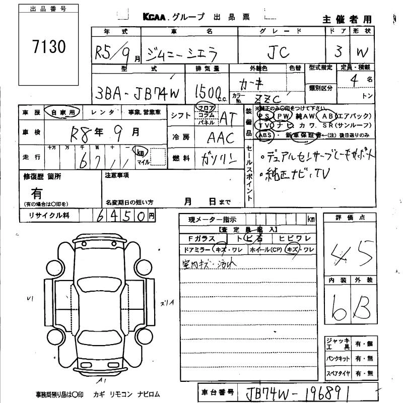 Статус не продан Лот 7130 Аукцион KCAA Fukuoka Дата аукциона 25.12.2025