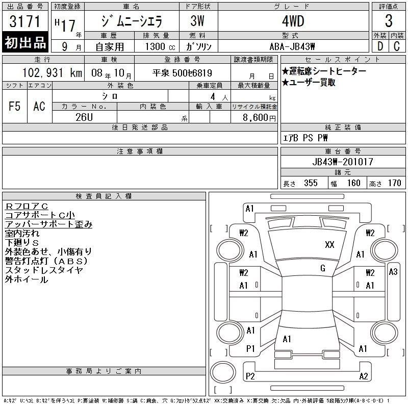 Год выпуска2005 Пробег 103 000 км КузовJB43W Комплектация4WD