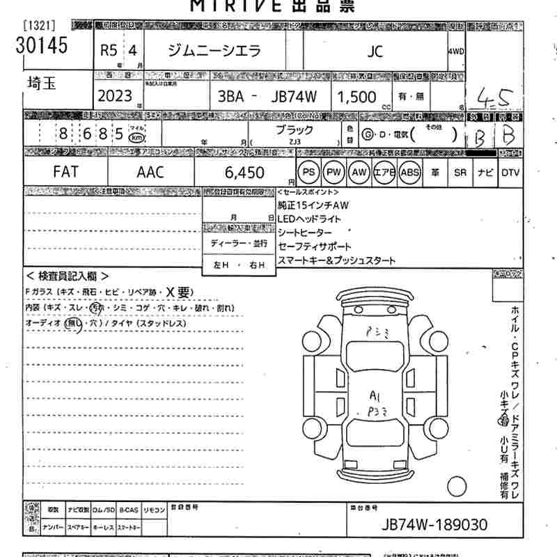 Статус выставлен на аукцион Лот 30145 Аукцион MIRIVE Saitama Дата аукциона 11.03.2026