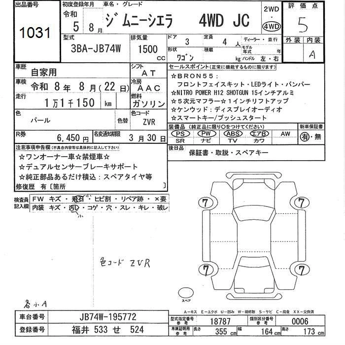 SUZUKI JIMNY SIERRA 2023 г., лот № 1031