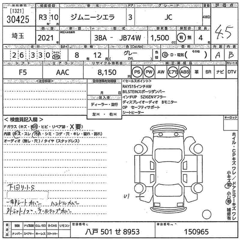 Статус выставлен на аукцион Лот 30425 Аукцион MIRIVE Saitama Дата аукциона 11.03.2026