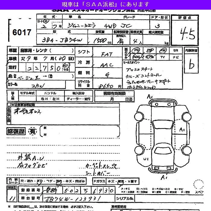 Статус выставлен на аукцион Лот 6017 Аукцион JU Shizuoka Дата аукциона 10.03.2026