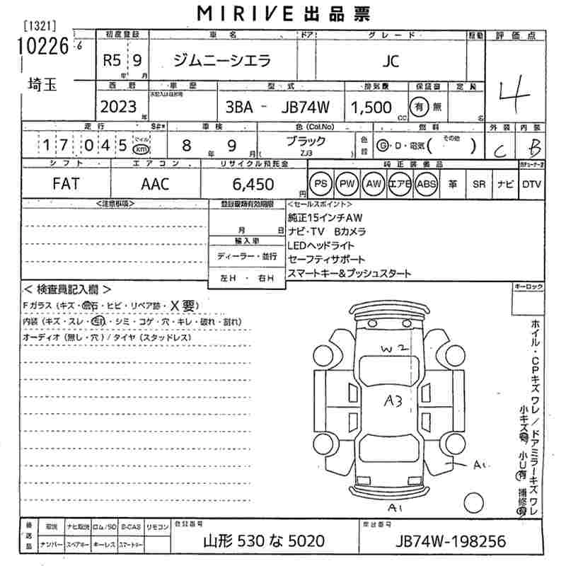 Статус выставлен на аукцион Лот 10226 Аукцион MIRIVE Saitama Дата аукциона 11.03.2026
