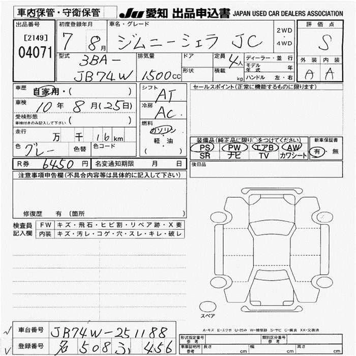 Статус выставлен на аукцион Лот 4071 Аукцион JU Aichi Дата аукциона 12.03.2026