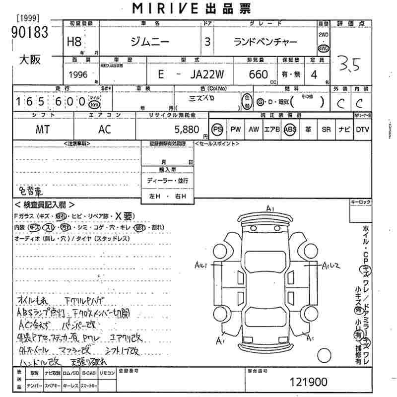 Год выпуска1996 Пробег 166 000 км КузовJA22W Комплектация LAND VENTURE 4WD