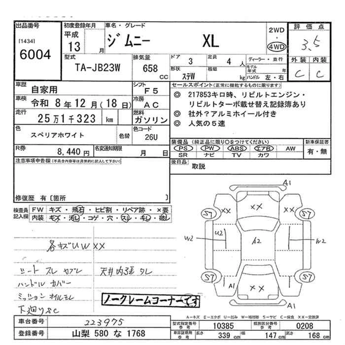 Год выпуска2001 Пробег 251 000 км КузовTA-JB23W КомплектацияXL