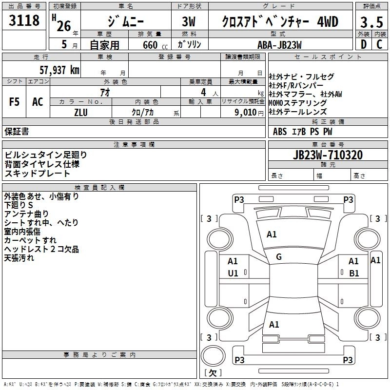 Год выпуска2014 Пробег 58 000 км КузовJB23W Комплектация CROSS ADVENTURE 4WD