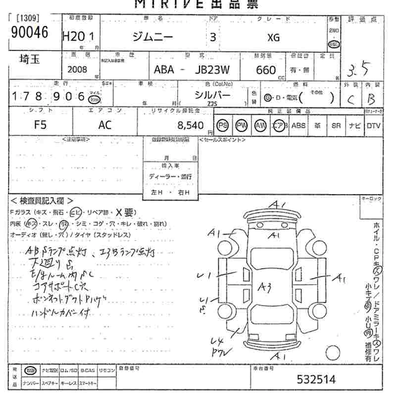 Статус продан Лот 90046 Аукцион MIRIVE Saitama Дата аукциона 10.12.2025