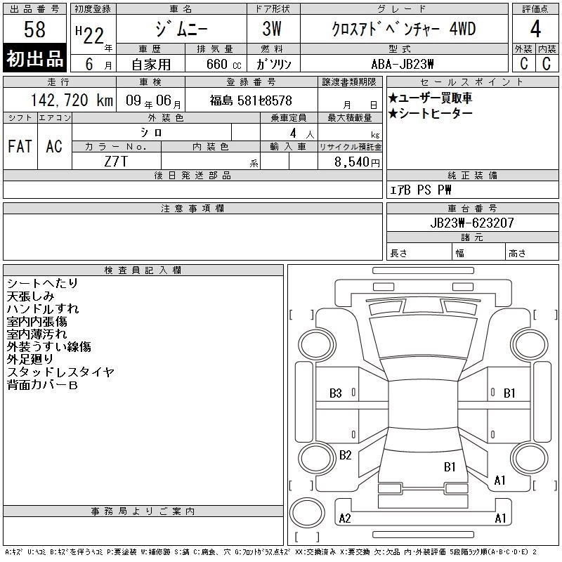 Год выпуска2010 Пробег 143 000 км КузовJB23W Комплектация CROSS ADVENTURE 4WD