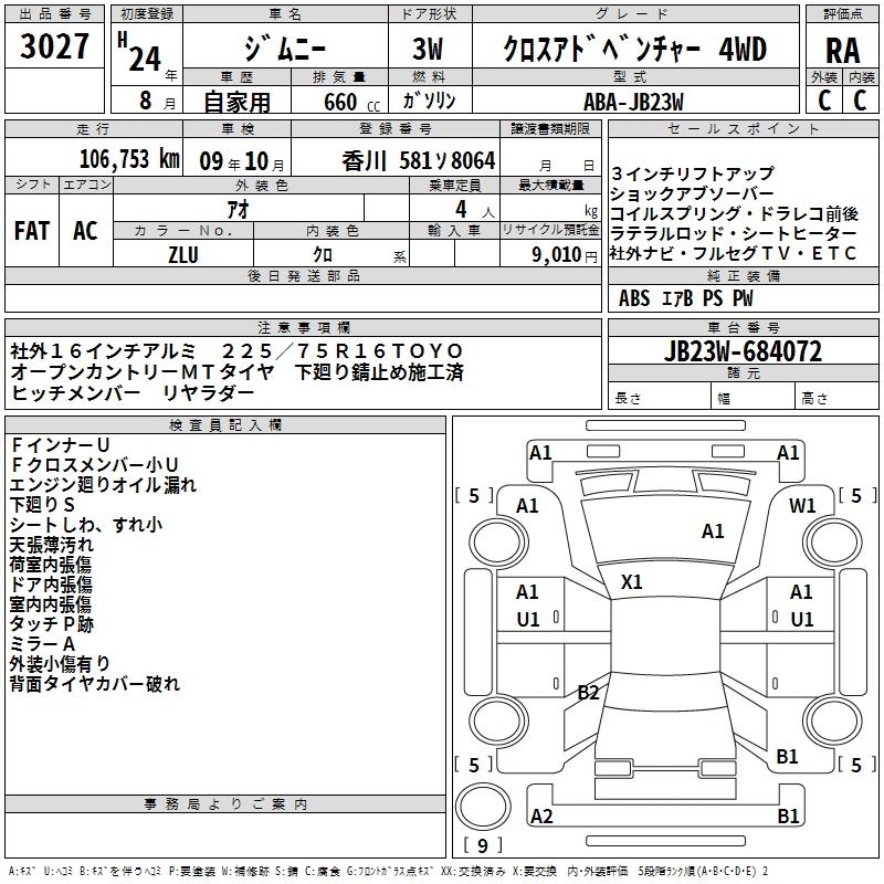 Год выпуска2012 Пробег 107 000 км КузовJB23W Комплектация CROSS ADVENTURE 4WD