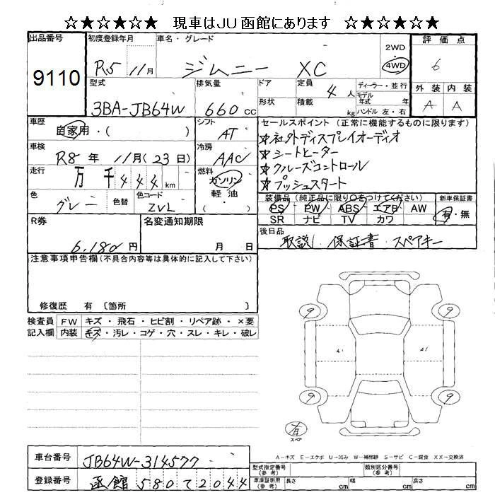 Статус продан Лот 9110 Аукцион JU Hokkaido Дата аукциона 06.02.2026