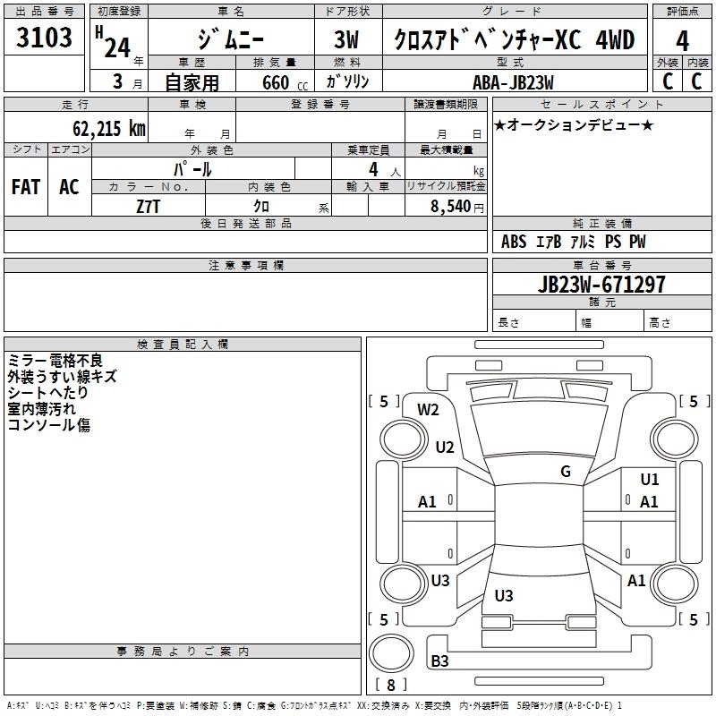 Год выпуска2012 Пробег 62 000 км КузовJB23W Комплектация CROSS ADVENTURE XC 4WD