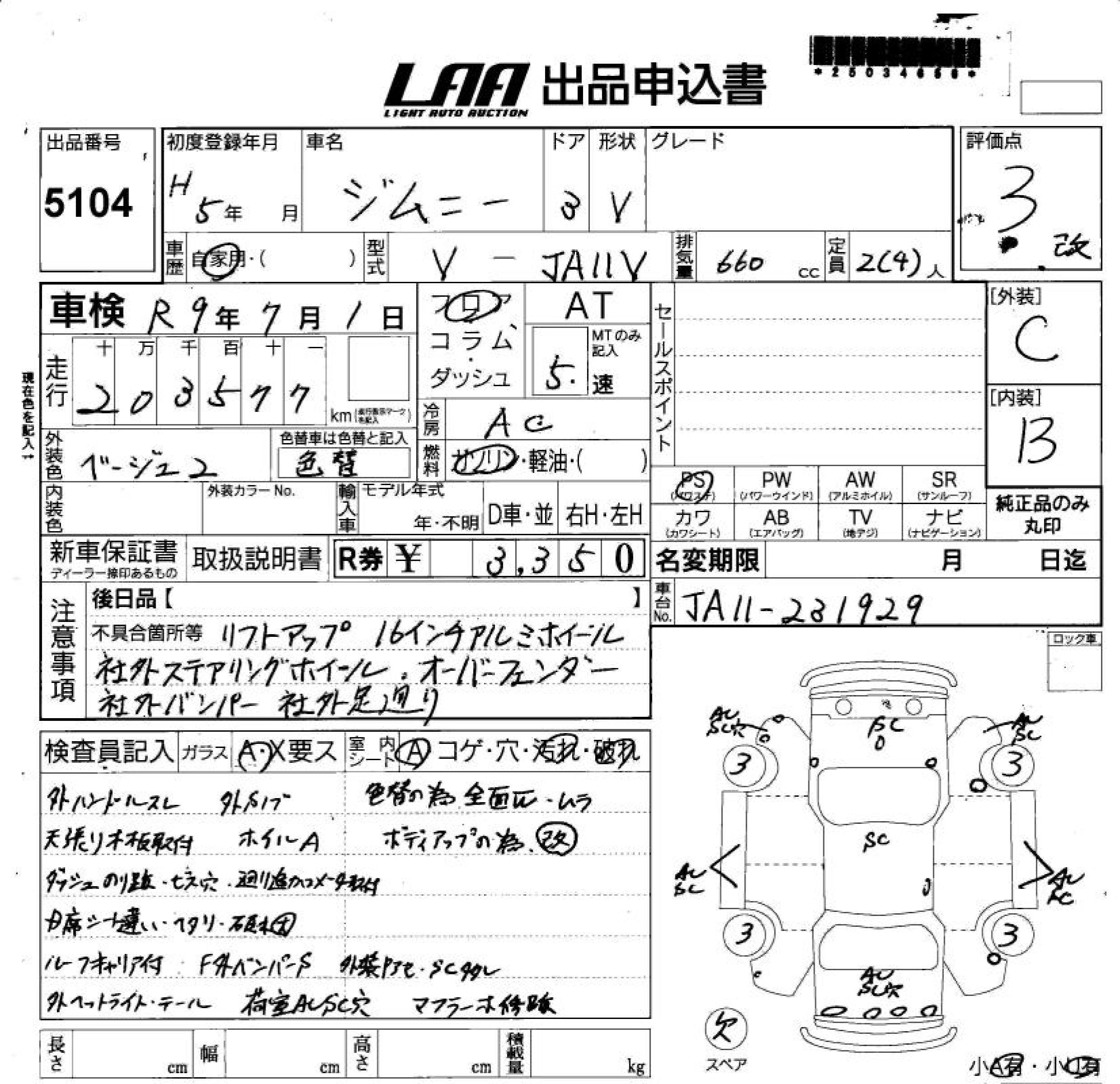 SUZUKI JIMNY 1993 г., лот № 5104