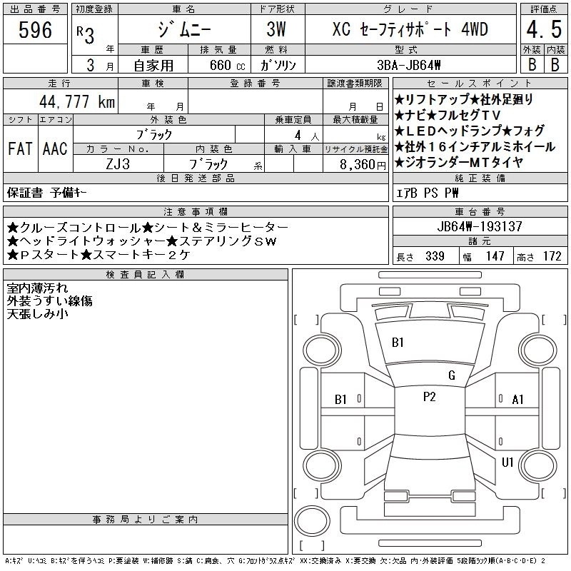 Год выпуска2021 Пробег 45 000 км КузовJB64W КомплектацияXC SAFETY SUPPORT 4WD